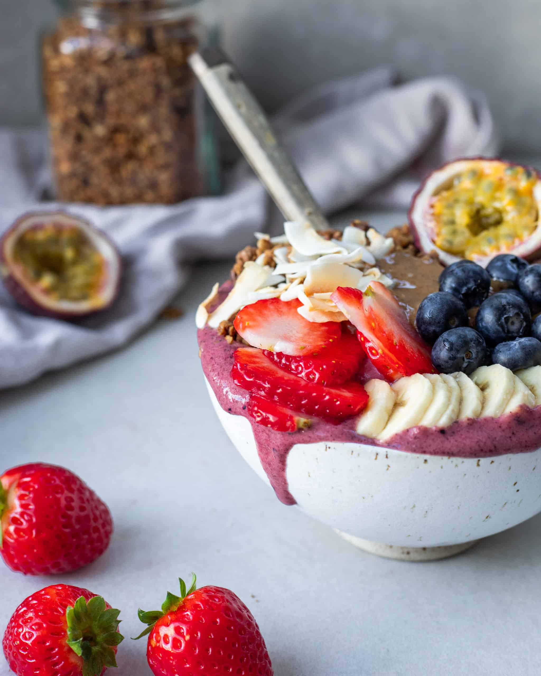Fullkomið “toppings” → fersk jarðaber, bananabitar, fersk bláber, hnetusmjör eða möndlusmjör, hempfræ, granóla og kakónibbur